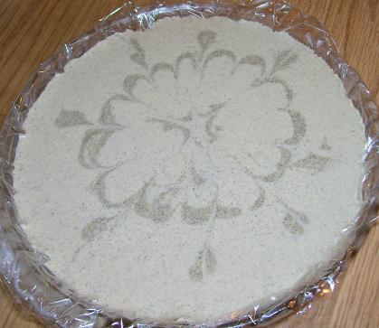 我沒有活動底的烤模,所以在6吋玻璃烤盤裡鋪了一層保鮮膜,方便取食。