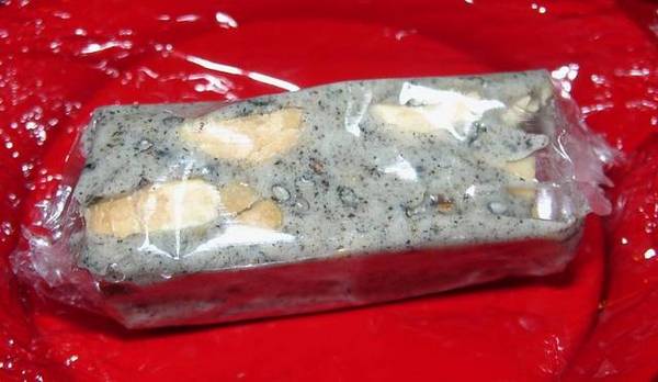抹茶松子牛軋糖↑(點點部份是抹茶粉)