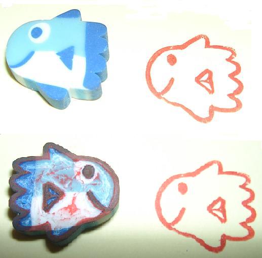 材料是贈品橡皮擦,獲贈的原因已不可考。利用現成的圖案加工,完成了我的DIY橡皮印章1號作品。