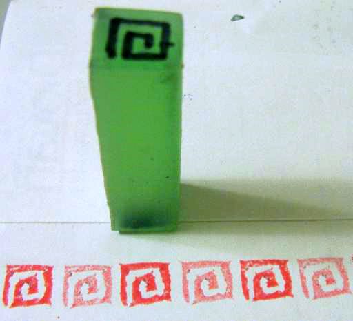 囘紋(這字也念ㄏㄨㄟˊ),打算蓋整排當邊框,因為刻工拙劣,邊邊不平,反倒有點"石刻"的感覺。轉個角度也有點像玫瑰花蕾。