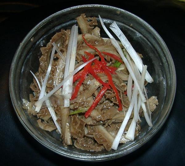 買了滷好的牛肚絲,又覺得太單調了點。來加點小工做成風味小菜。