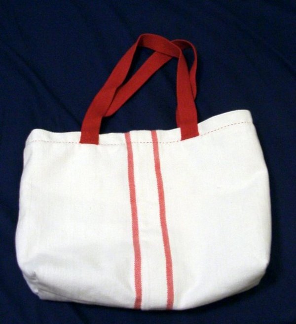 原本是想買有小花圖案的抹布(呃..店裡叫它"擦巾"啦)來做包包,質料是有點粗的純棉,手感還不錯。但是環亞店只有條紋&格子的,就買了這個最便宜的,一條19元,尺寸約為46 x 58 CM。有些棉製品縮水縮得很嚴重,所以布料最好先下水洗過,以免發生"意外"。