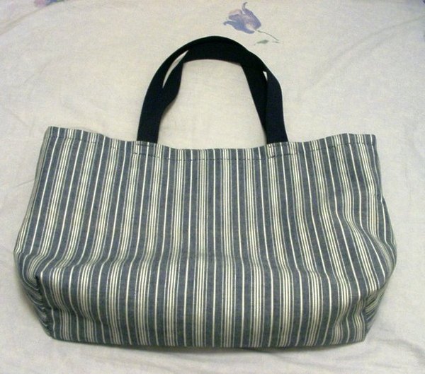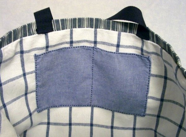 IKEA抹布包又來了! 這次是利用格子花樣的抹布作為內裡,表布則是同學熱情相贈的條紋布。
