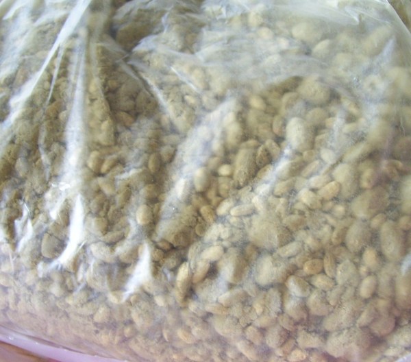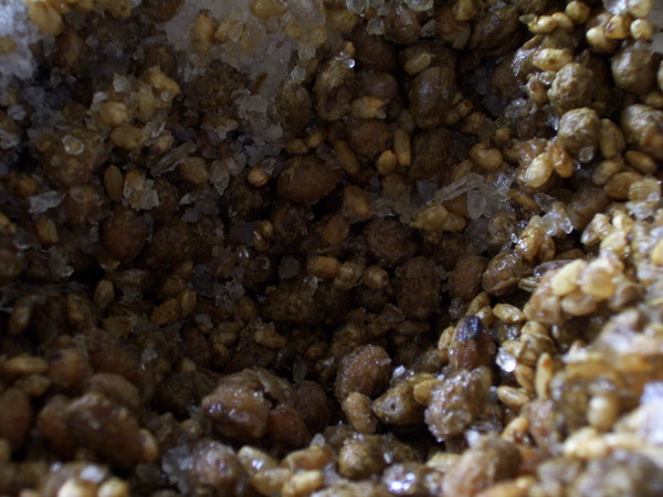 這是豆埔---發酵(霉)乾燥的黃豆+米粒。我對豆埔還是有點障礙,雖然明知它是可以吃的東西而且還蠻好吃的......因為一打開就會"塵土(霉菌)飛揚",所以關在袋子裡拍照就好。看每一粒黃豆和米粒都裹得滿滿的......