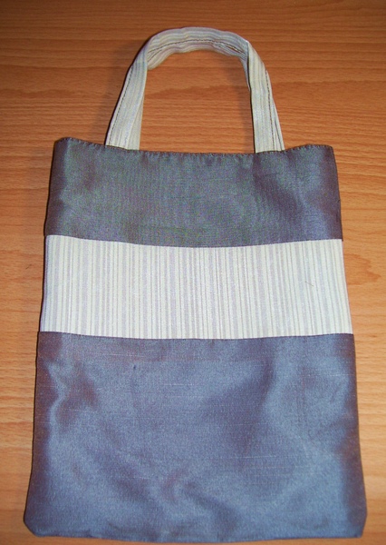 不是多好的料子,但顏色真好看。素面藕色的布料帶點光澤,和旁邊的條紋布擺在一起就是很日本風,所以決定做成這樣的午餐小包,有點和服的感覺。成品大小約為24.5CM x 20CM。