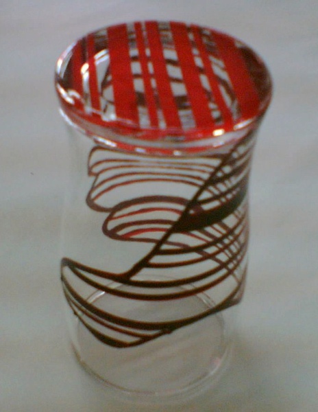 三遊琉園。今天又做了一個噴砂杯,另一個熔合玻璃的墜飾要等兩周才能取件。玻璃杯的圖案是早就想好了的,看得出來是什麼嗎?