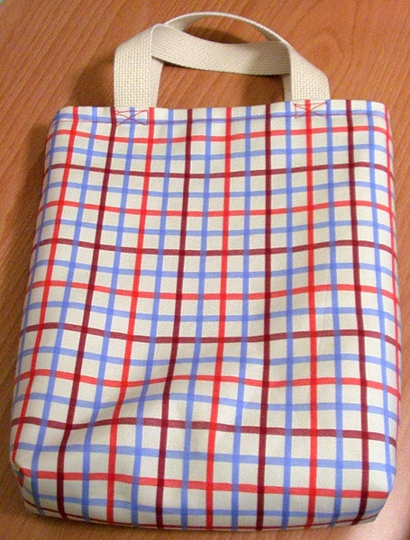 依照慣例,裏布和表布都先燙上布襯。有了縫紉機的幫忙,果然製作的速度完全不同,ㄧ個晚上就完成了!感覺上格子花色要對花應該是相對的容易吧?但實際製作時,直向的條紋是對上了,橫向卻還是歪的。為什麼為什麼?訣竅到底在哪裡?雖然並不影響功能,但我想要很正的格子包啊~~~