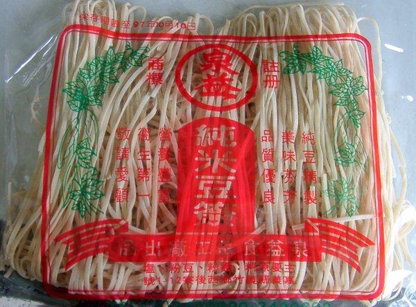"豆簽"是一種傳統麵食,以麵粉和豆類製成,麵身是乾的,淺淺的褐色,比陽春麵要細薄一點,搭配夏季盛產的絲瓜非常對味。現在市面上比較少見,這是在市場專賣乾貨的雜貨店買的,一包才5元。