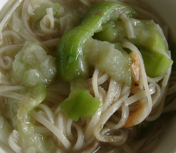 P.S. 豆簽非常容易吸水,煮好後如果沒有馬上吃,湯汁瞬間就會被吸乾了。所以在煮菜瓜湯時水可以多加點,並在加入豆簽前先盛出部分的湯,吃的時候再淋上。豆簽也可用麵線或米苔目替換。